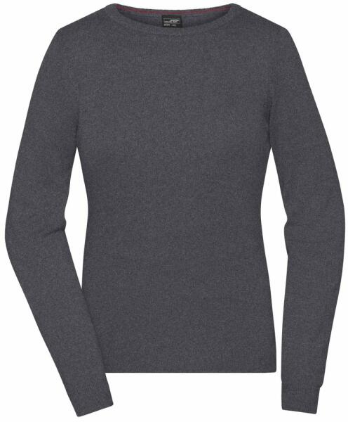 Ez a könnyű női pulóver kellemes és kényelmes pamut anyagból készült, klasszikus szabású, kerek nyakkivágással.