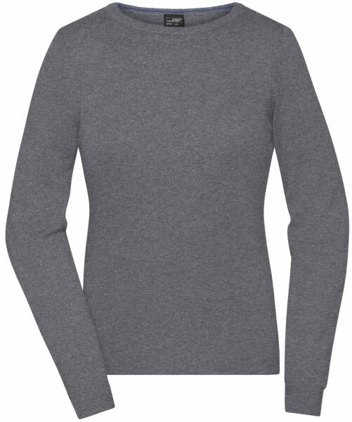 Ez a könnyű női pulóver kellemes és kényelmes pamut anyagból készült, klasszikus szabású, kerek nyakkivágással.