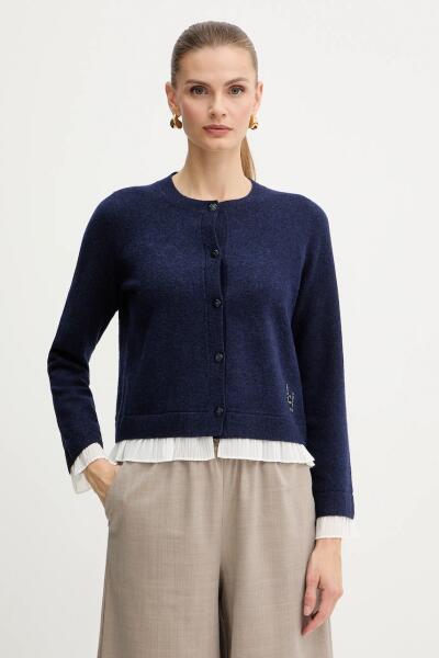 Liu Jo gyapjú kardigán sötétkék, könnyű, MF5122 MA90Q - sötétkék S