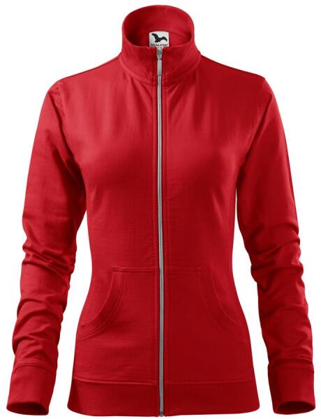 Női kapucni nélküli cipzáros felső. A gallér, az oldalsó panelek, a szegély és a mandzsetta bordás kötött anyagból készül. A pulóvernek kenguru stílusú zsebe van. Nyomtatáshoz és hímzéshez is alkalmas. Súlya 300 g/m2.